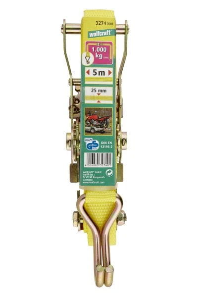 Zacisk taśmowy z grzechotką 5 m/1000 kg Wolfcraft - z mech. zapad. i hakiem